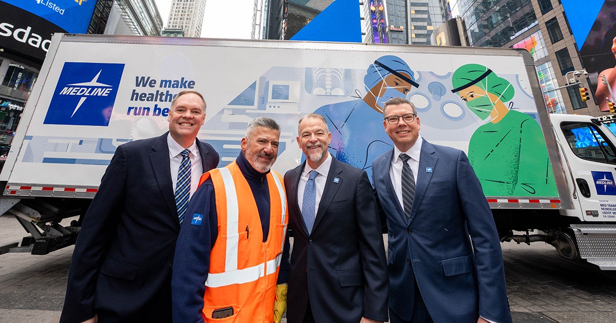 Well before the Nasdaq opening bell on Dec. 17, Medline’s listing day began with a MedTrans truck threading its way through crowded Manhattan streets. At the wheel was Joe Ruiz, navigating toward Times Square, where his truck, bearing Medline logos and a smiley-face sign he affixed himself, would help mark one of the biggest milestones in the company’s history.
