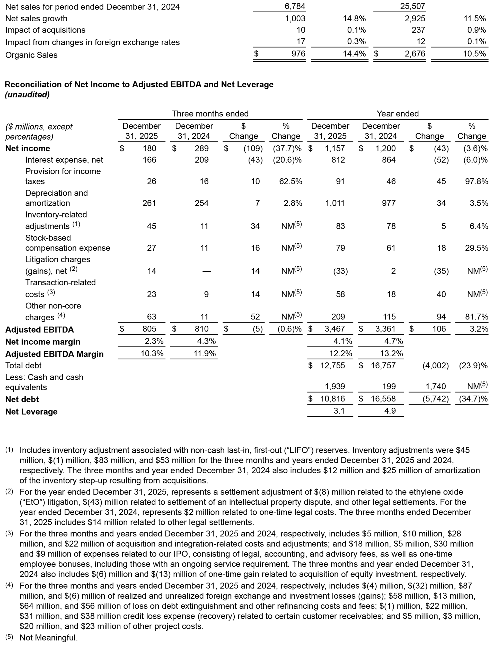 (1) Organic Sales, Adjusted EBITDA, Adjusted EBITDA Margin, Free Cash Flow, and Net Leverage are non-GAAP financial measures. See discussion of these measures and reconciliations to GAAP at the end of this press release for more information.