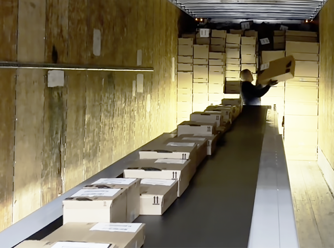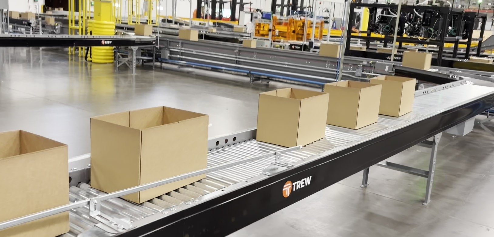 ... the items are deposited in individual order boxes, which move down a Trew conveyer ...